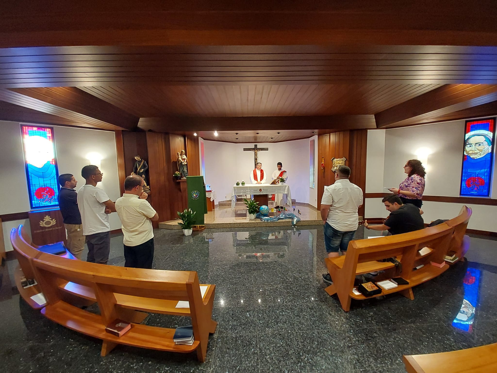 Os peregrinos começam a chegar para o programa hospitaleiro que antecede as jornadas. Hoje é dia de movimento. Chegam peregrinos de vários locais onde a Ordem tem uma presença. Foi em italiano que se celebrou ontem na capela da Cúria Provincial.